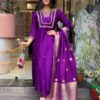 Elevate your ethnic wear collection with this beautiful Women’s and Girls’ Roman Silk Embroidered A-Line Kurta Set. The set includes a stunning A-line kurta with intricate embroidery, paired with a matching pant and dupatta. Perfect for both women and girls, this ensemble combines traditional charm with modern sophistication, making it ideal for a variety of occasions.
